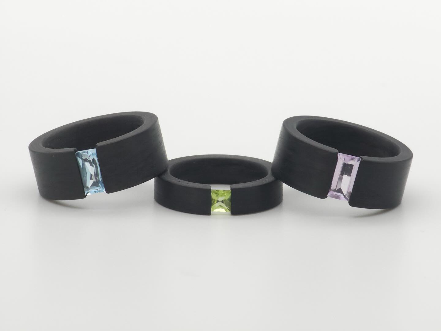 Piezas realizadas en plata, combinaciones de plata y oro, o los más variados materiales, como acero, aluminio, cobre oxidado. Texturas muy variadas, y todo tipo de piedras semipreciosas y preciosas.
